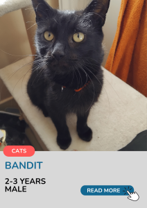 With his sleek black coat and mischievous spirit, Bandit is the ultimate Halloween cat. Mysterious, magical, and just a little bit cheeky. At 2–3 years old, this lively boy is full of energy and always ready to haunt the kitchen the second you crack open a tin of wet food. He doesn’t just love it, he goes batty for it!