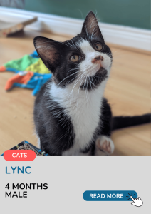 😺Lync is the Curious Cutie. He’s the first to greet you at the door and follow you around the house. He LOVES his food, but he won’t start eating until he gets a bit of love and pets from you. He leads playtime with his siblings, and he could definitely win the high jump contest!